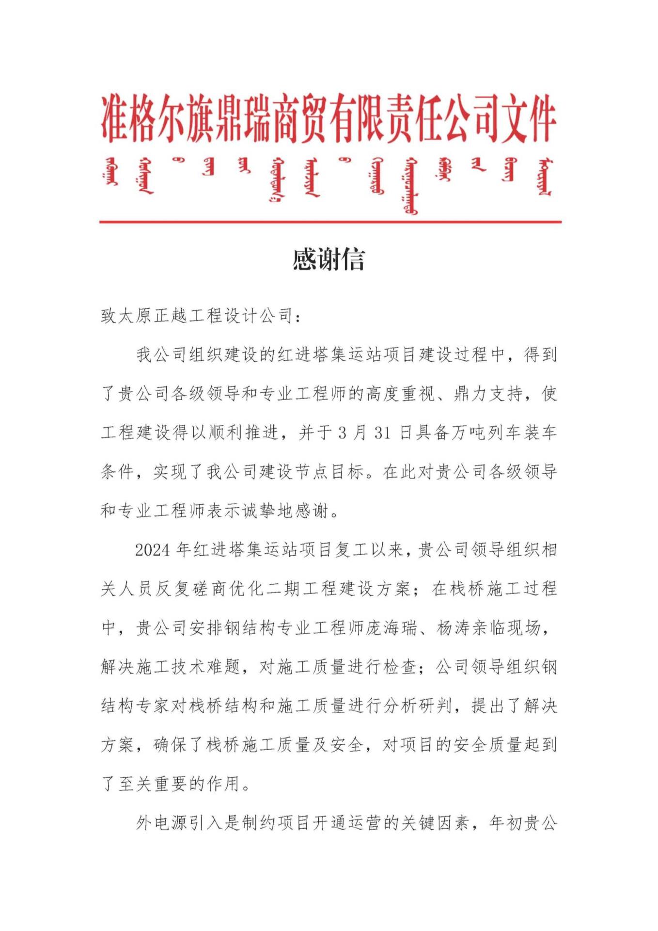 由我司承建的準格爾旗紅進塔集運站項目,因設計部在工程建設過程中的卓越…