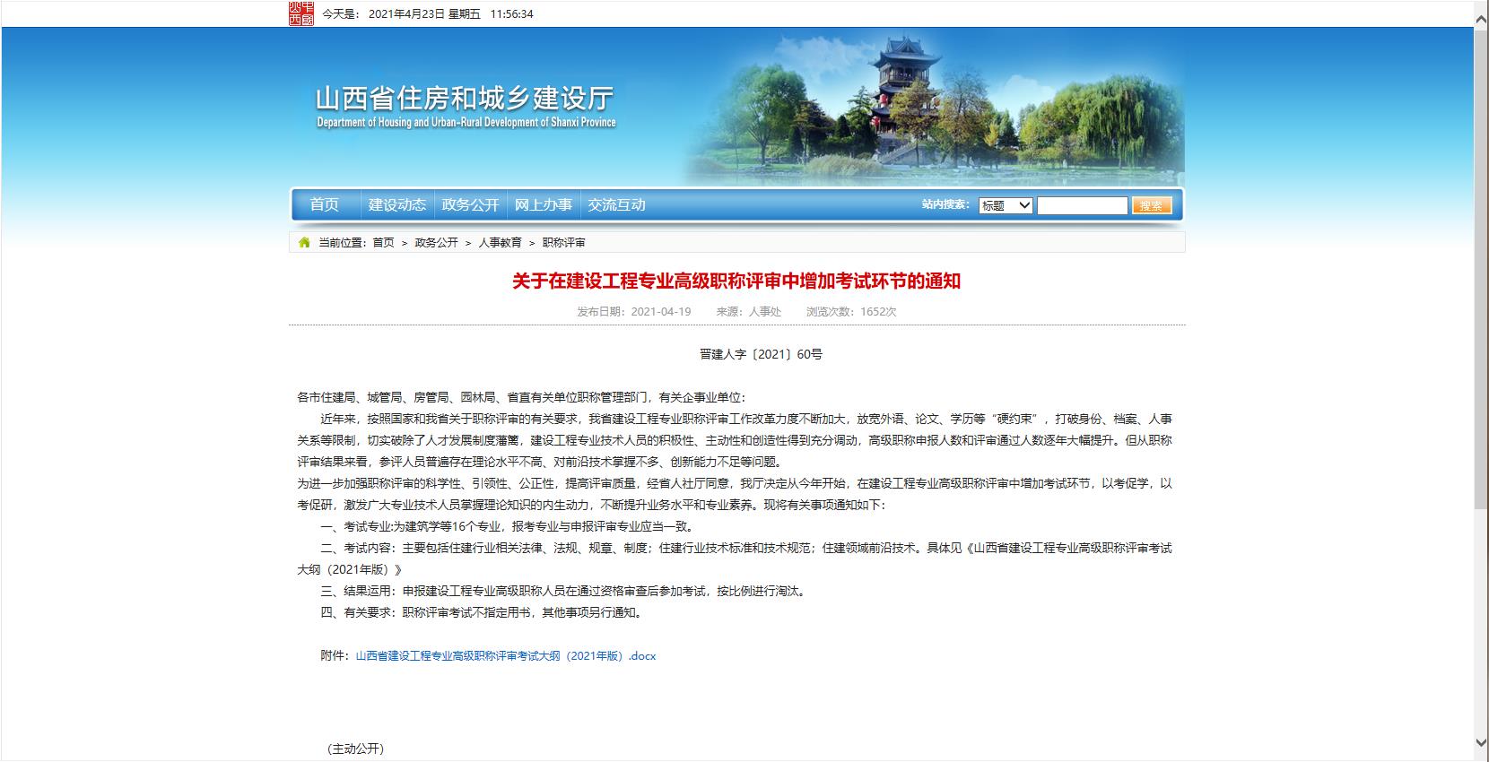 關(guān)于在建設(shè)工程專業(yè)高級職稱評審中增加考試環(huán)節(jié)的通知
